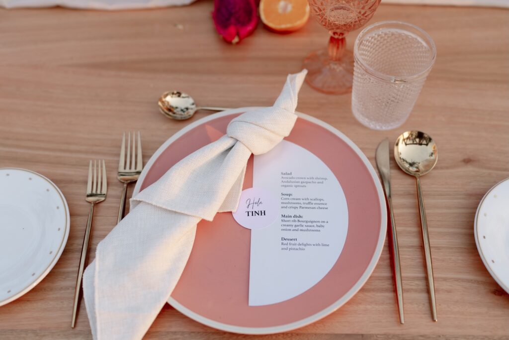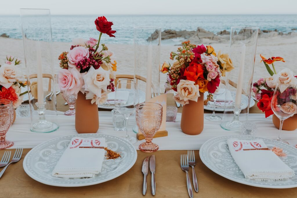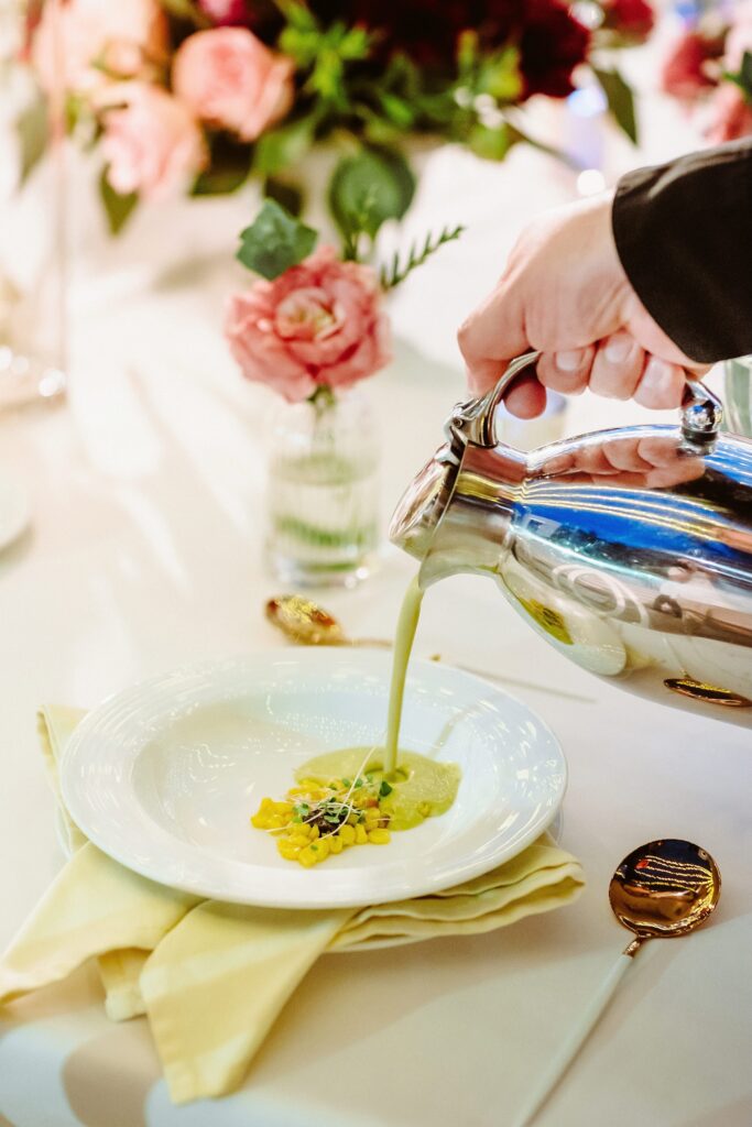 The menu should be an extension of the couple’s personality and the setting. For example, a beach wedding suggests freshness and lightness with dishes like ceviches, citrus, or fish. In contrast, a winter wedding at a hacienda calls for robust, comforting flavors, such as hot cream, cuts of meat, and spices.