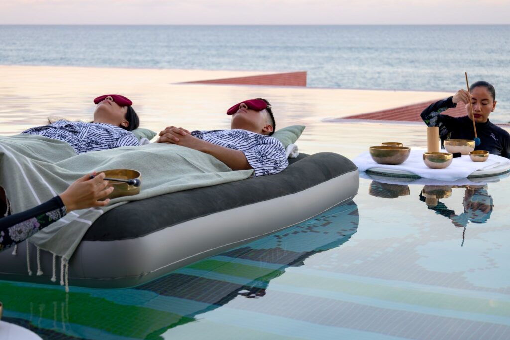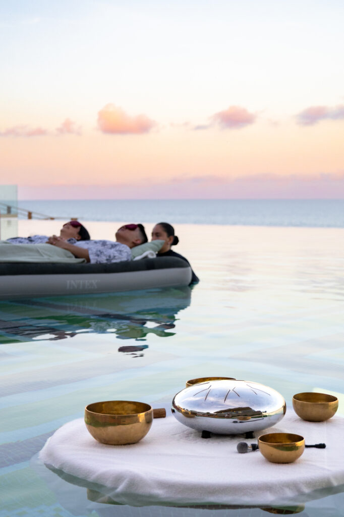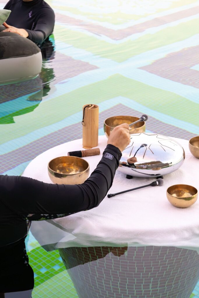 The Tibetan bowls generate acoustic vibrations that propagate throughout the water. This process provides a sensation akin to a full-body massage, alleviating muscle tension and reducing stress. Guests gently float into a state of peak tranquility as they connect with the surrounding natural beauty. The water functions as a powerful amplifier of the healing frequencies, significantly intensifying the overall therapeutic outcome.